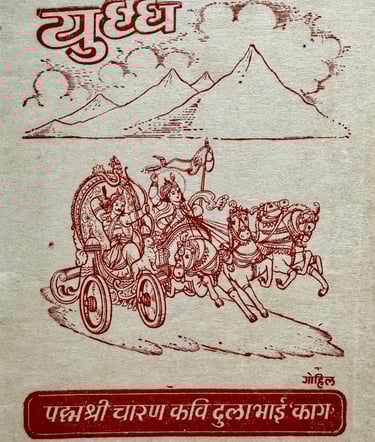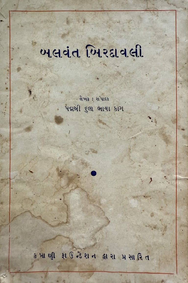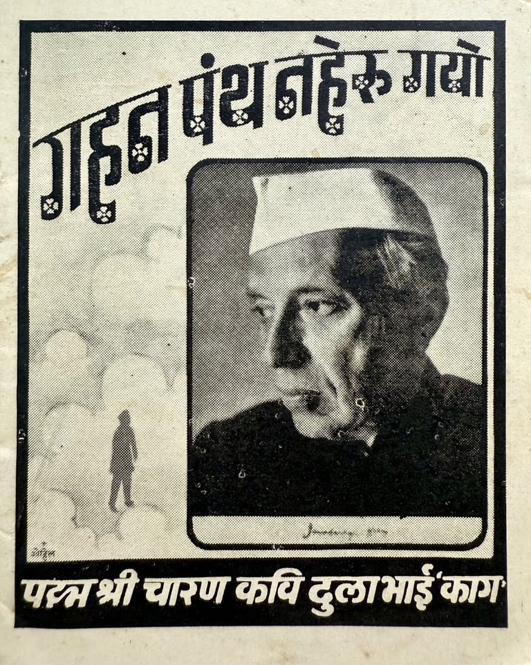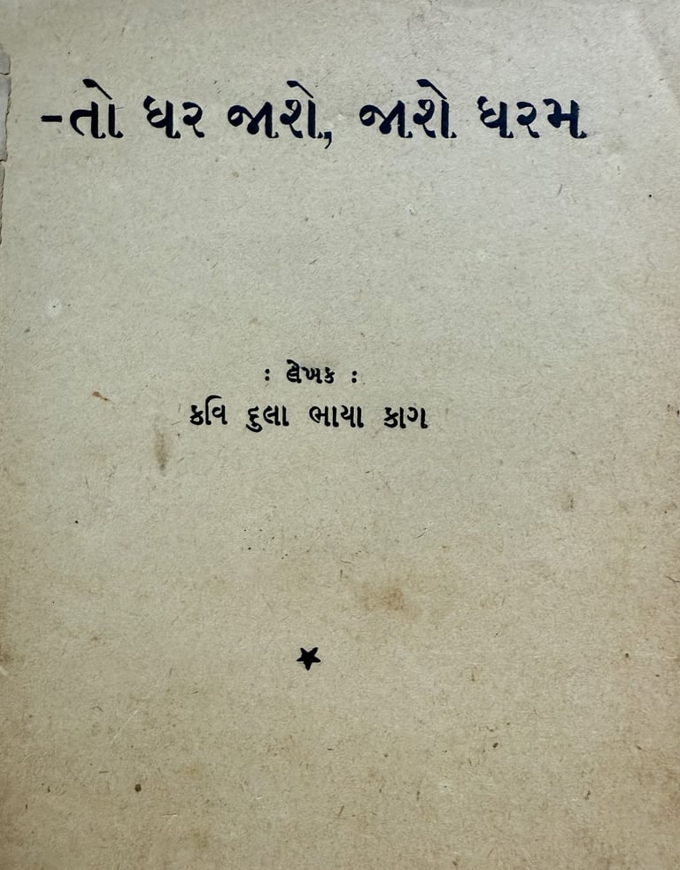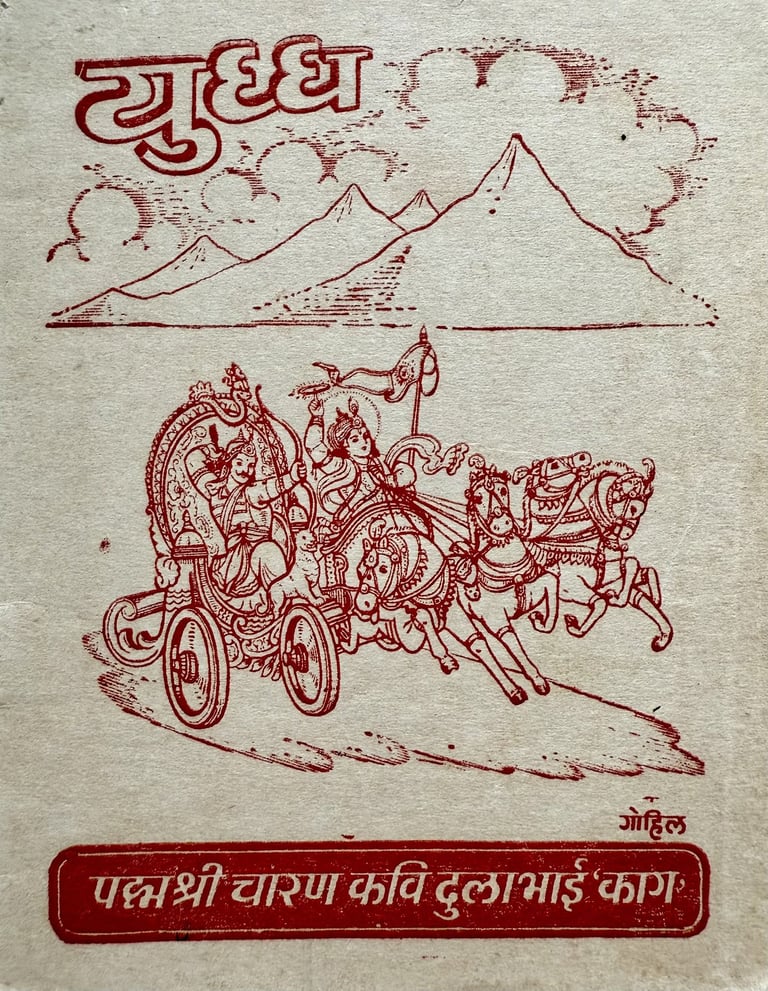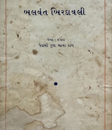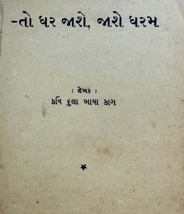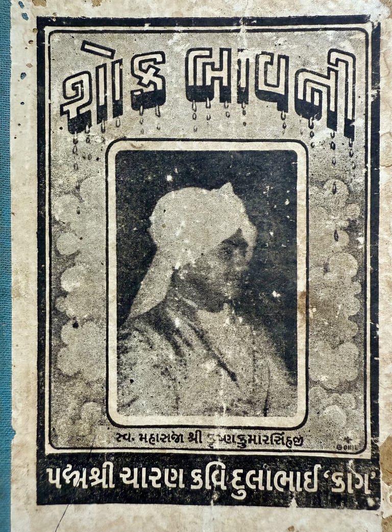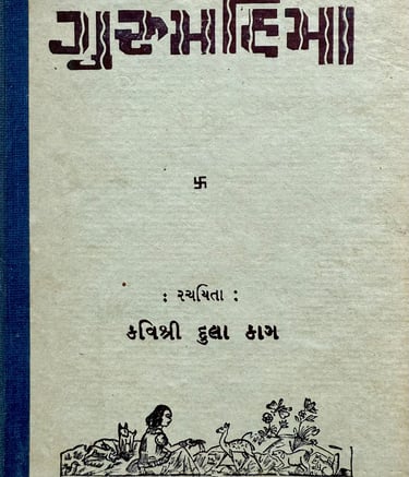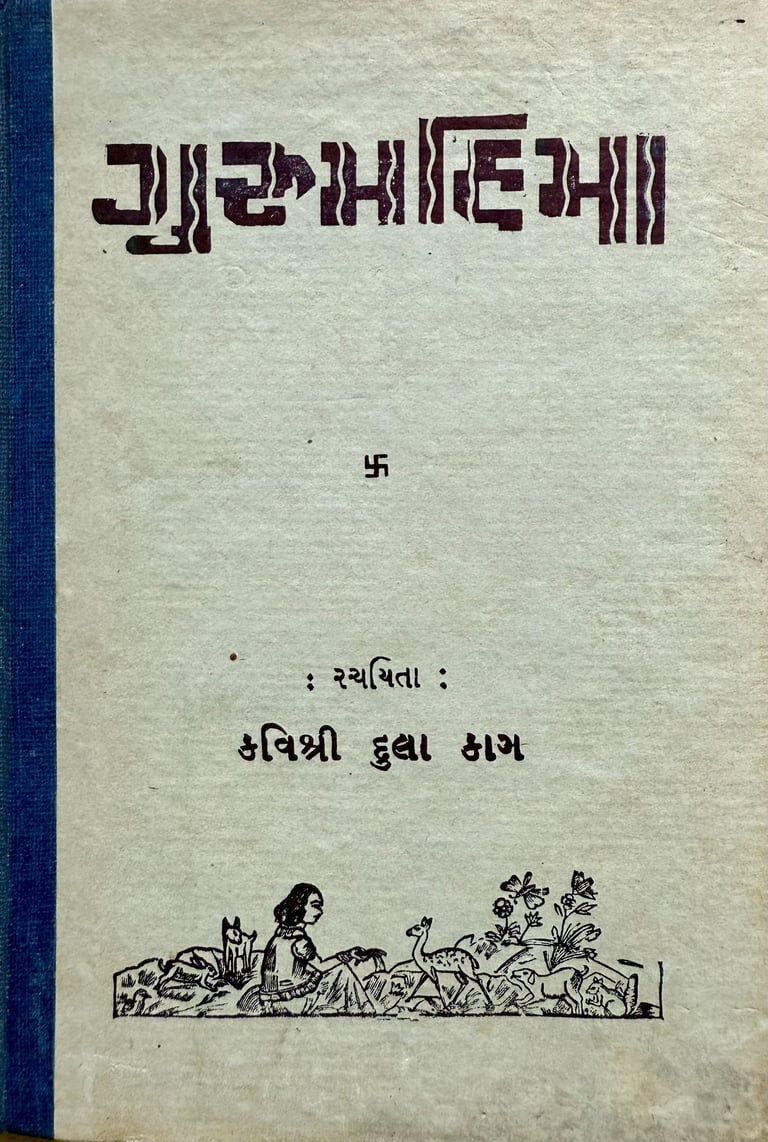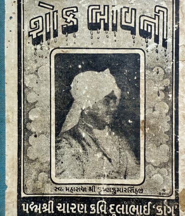 Published in 1965, this book is a tribute to Bhavnagar’s beloved Maharaja Shri Krishnakumarsinhji, written after his death. Through 52 duhas, Kagbapu expresses both grief and reverence, honoring the Maharaja’s life, his contributions to the region, and his legacy as a compassionate ruler. The verses blend mourning with celebration, painting a vivid picture of a leader whose benevolence touched countless lives.