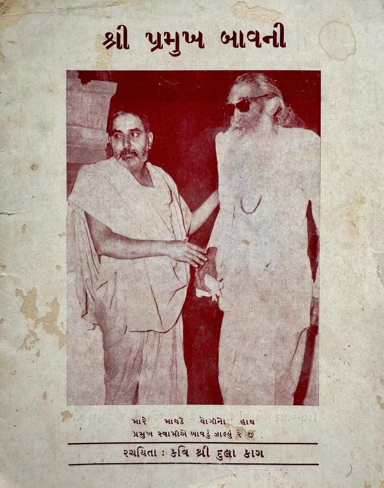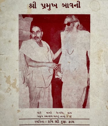 Published in 1973 to celebrate P.P. Pramukhswami Maharaj’s 53rd birth anniversary, this book honors his spiritual leadership through 52 duhas. Unlike other Bavni titles, this is not a post-death tribute but a living homage to Pramukhswami’s life and teachings. Kagbapu extols his role as a beacon for countless followers within the Swaminarayan sect, capturing his wisdom, humility, and devotion in verses that inspire spiritual growth and reverence.
