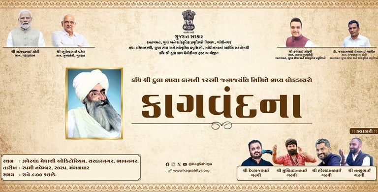 A grand Lok-Dayro and Bhajan Sandhya to commemorate the life and legacy of Gujarat’s beloved saint-poet and Padma Shri awardee, Poet Dula Bhaya Kag.